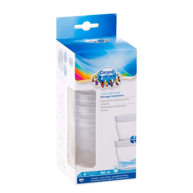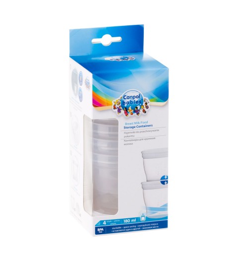 Canpol babies - pojemniki do przechowywania pokarmu 4szt 180ml | 12/204