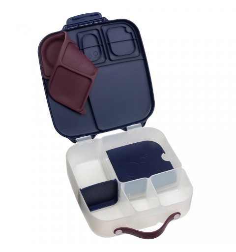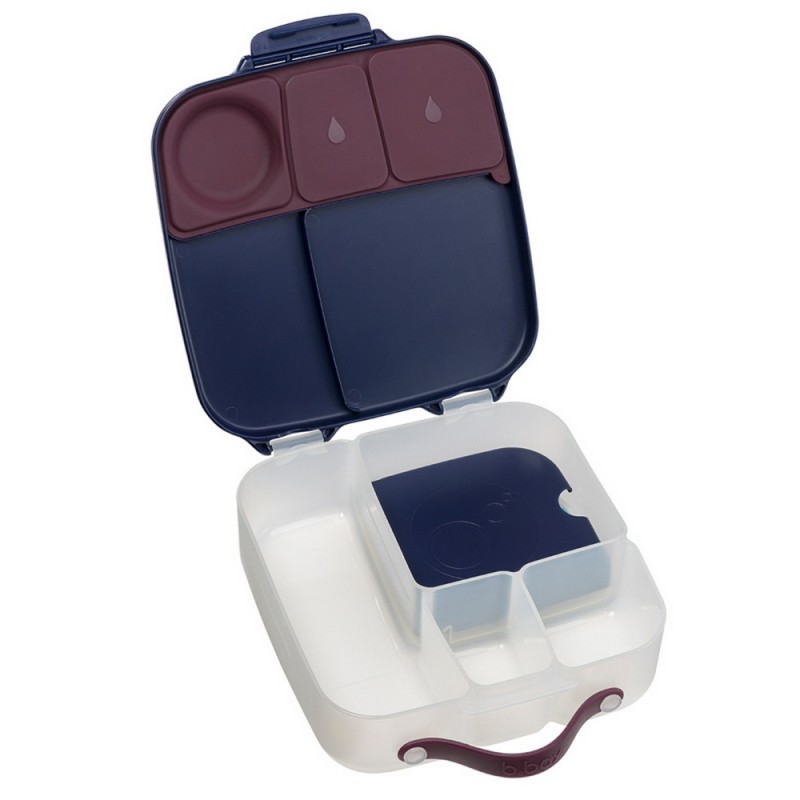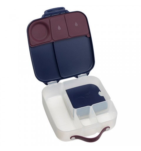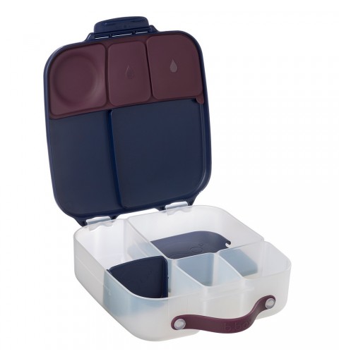 Duży lunchbox b.box jest produktem funkcjonalnym i wygodnym w użytkowaniu. Do przenoszenia służy poręczny uchwyt. Klips zamykający dobrze trzyma a jednocześnie z łatwością daje się otworzyć nawet przedszkolakom. Także mycie nie nastręcza kłopotów. Nie ma tu trudno dostępnych zakamarków, ruchome przegrody są wyjmowane a silikonowa uszczelka na pokrywce zdejmowana. Dzięki temu szybko i dokładnie umyjesz i osuszysz lunchbox. Pudełko z jedzeniem możesz także schować do lodówki.