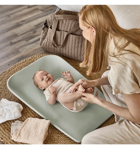 Przewijak Leander Matty™ jest lekki i ma mocną konstrukcję gwarantującą lepszą stabilność, dzięki czemu możesz go zabrać ze sobą i postawić w dowolnym miejscu, na przykład na komodzie, stole lub na podłodze. Małe gumowe nóżki zapewniają wentylację, zapobiegają zawilgoceniu i pozostawieniu śladów na powierzchni pod przewijakiem. Przewijak Matty™ został poddany testom i uzyskał certyfikaty zgodności z europejską normą dotyczącą bezpieczeństwa dzieci i niebezpiecznych substancji.