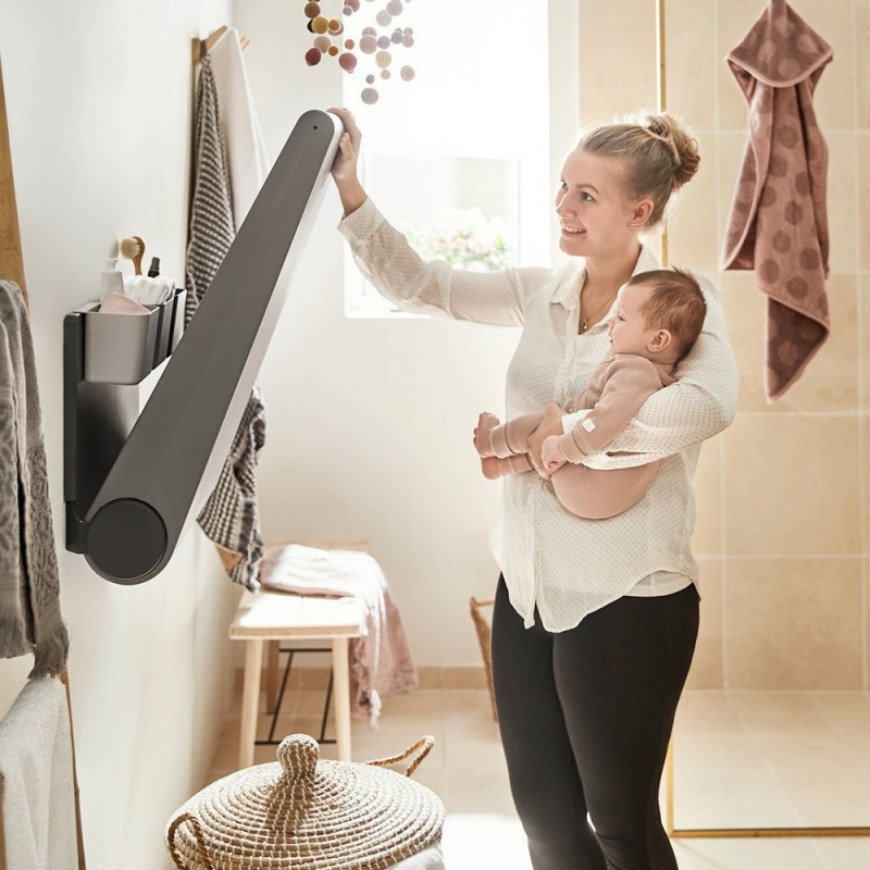 Leander Wally™ to odpowiedź na potrzeby współczesnego domu. Jego konstrukcja i niewielkie rozmiary pozwalają zaoszczędzić sporo miejsca. Gdy nie używasz przewijaka, możesz go złożyć, podnosząc blat. Leander Wally™ świetnie się sprawdzi nie tylko w pokoju dziecięcym, ale również w łazience – to doskonałe rozwiązanie dla każdego, kto ceni zarówno funkcjonalność, jak i prywatność oraz dyskrecję.