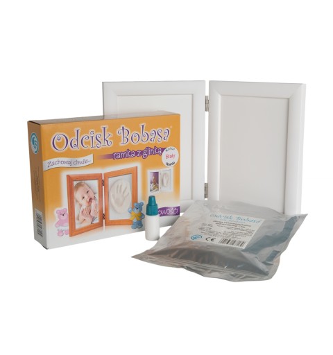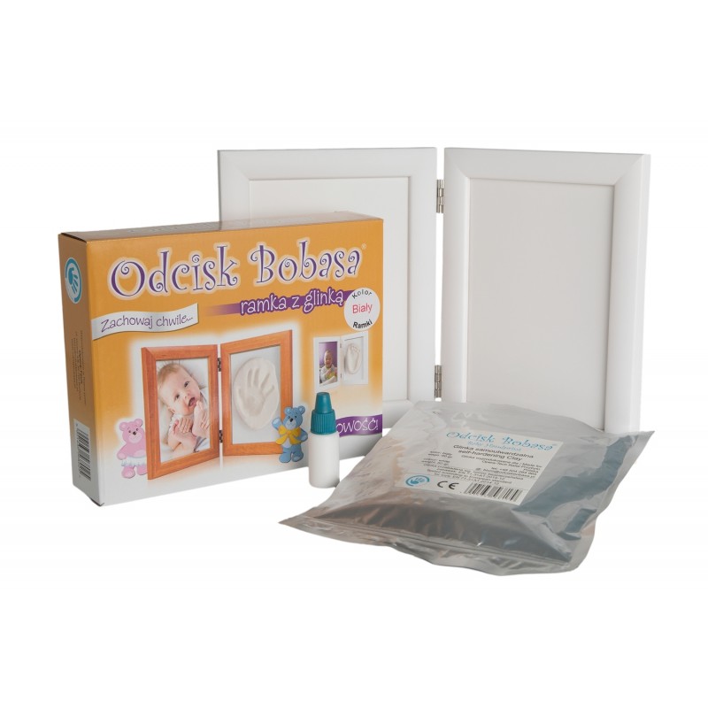 Odcisk Bobasa - podwójna ramka z glinką| Biała