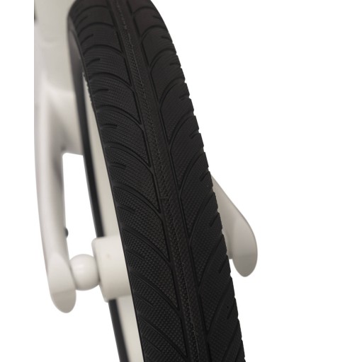 Komfort jazdy zapewniają przednie amortyzatory, gumowe elastyczne bezdętkowe koła oraz miękkie siodełko wypełnione pianką wysokoelastyczną. Opony posiadają bieżnik, zapewniający dobrą przyczepność.