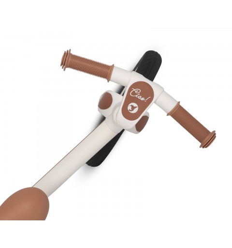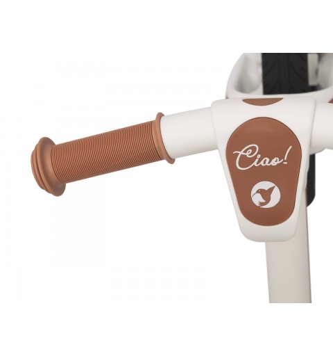 Rowerek biegowy CIAO jest produktem najwyższej jakości. Jego solidna i stabilna konstrukcja została wykonana w technologii łączącej metal z tworzywem sztucznym, dzięki czemu jego rama zyskała bardzo dużą sztywność przy jednoczesnej niskiej wadze. Dzięki regulacji wysokości siodełka i kierownicy rowerek CIAO przeznaczony jest dla dzieci w wieku od 2 do 5 lat i o wadze do 25 kg zgodnie z europejską normą bezpieczeństwa EN 71-1-2-3.