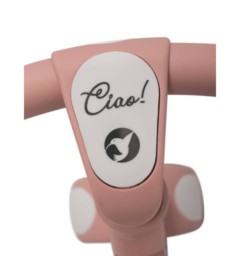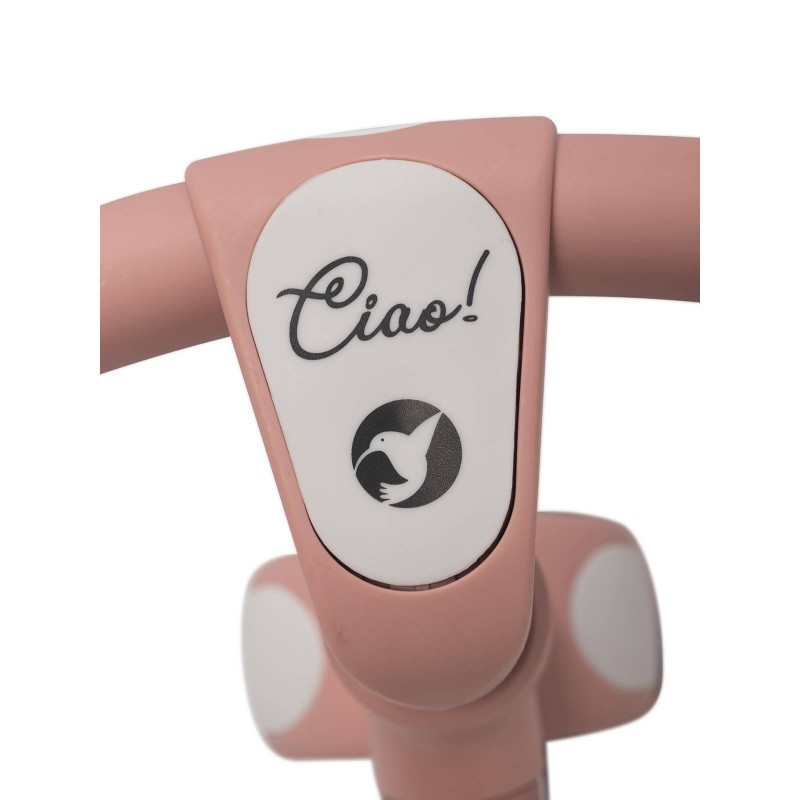 Rowerek biegowy CIAO jest produktem najwyższej jakości. Jego solidna i stabilna konstrukcja została wykonana w technologii łączącej metal z tworzywem sztucznym, dzięki czemu jego rama zyskała bardzo dużą sztywność przy jednoczesnej niskiej wadze. Dzięki regulacji wysokości siodełka i kierownicy rowerek CIAO przeznaczony jest dla dzieci w wieku od 2 do 5 lat i o wadze do 25 kg zgodnie z europejską normą bezpieczeństwa EN 71-1-2-3.