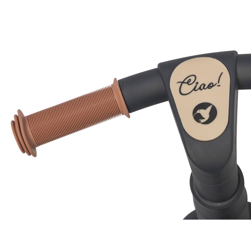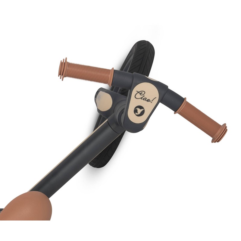 Rowerek biegowy CIAO jest produktem najwyższej jakości. Jego solidna i stabilna konstrukcja została wykonana w technologii łączącej metal z tworzywem sztucznym, dzięki czemu jego rama zyskała bardzo dużą sztywność przy jednoczesnej niskiej wadze. Dzięki regulacji wysokości siodełka i kierownicy rowerek CIAO przeznaczony jest dla dzieci w wieku od 2 do 5 lat i o wadze do 25 kg zgodnie z europejską normą bezpieczeństwa EN 71-1-2-3.