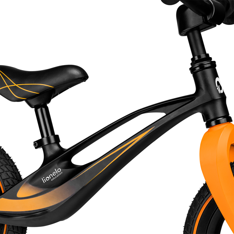 Specjalny stop magnezu, z którego wykonano ramę rowerka Lionelo Bart Air, charakteryzują prafktyczne właściwości: jest lekki, wytrzymały i odporny na uszkodzenia, a przy tym działa jak naturalny amortyzator. Duże, pompowane koła z bieżnikiem sprawiają, że pojazd świetnie trzyma się drogi i płynnie reaguje na skręty.