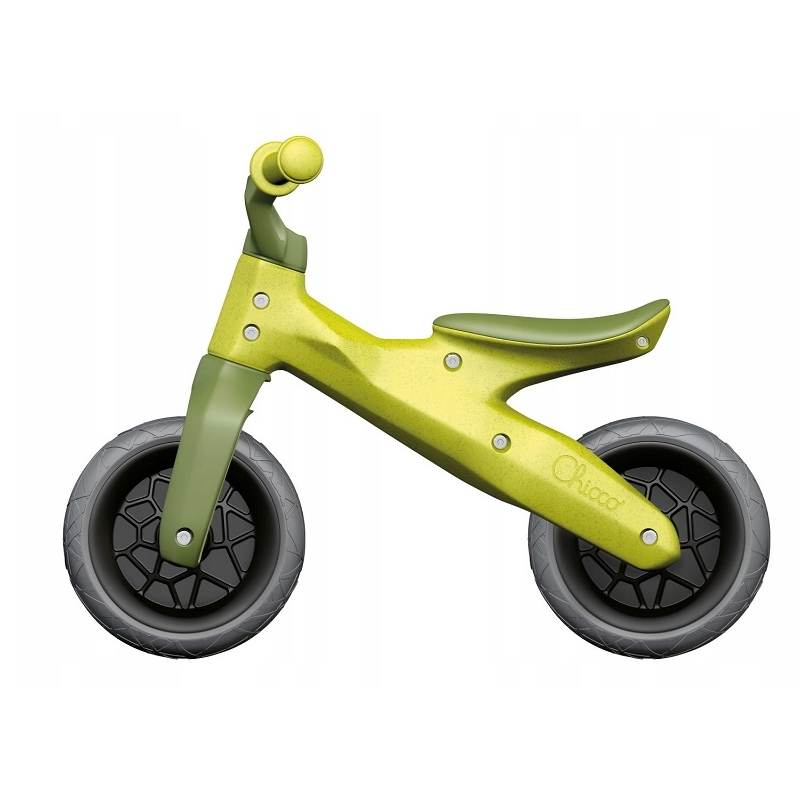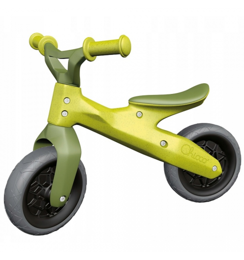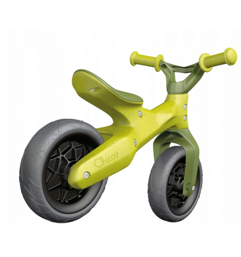 Rama, siodełko i uchwyty są wykonane w 80% z plastiku pochodzącego z recyklingu, z pełnym poszanowaniem środowiska, przestrzegając wysokich standardów jakości i bezpieczeństwa wszystkich zabawek Chicco.