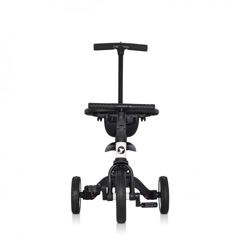 Rowerek biegowy – dla dzieci w wieku od 3 do 4 lat. Dzięki innowacyjnemu opatentowanemu systemowi, wciskając zaledwie 3 przyciski i nie demontując żadnych elementów, przekształcisz rowerek trójkołowy w praktyczny edukacyjny rowerek biegowy. Wystarczy połączyć tylne koła w jedno stabilne podwójne koła i zdemontować pedały.