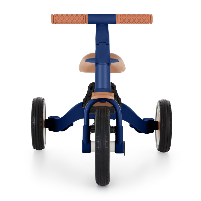 Wielofunkcyjny rowerek trójkołowy przeznaczony dla dzieci od 1,5 do 5 roku życia lub do 25 kilogramów. To nie tylko pojazd, służący do przemieszczania się i do nauki balansowania, ale także towarzysz rosnącego dziecka podczas wielu etapów rozwoju. Przemyślana transformacja rowerka dopasowuje się do potrzeb malucha w miarę wzrostu jego zdolności motorycznych. Początkowo to rowerek trójkołowy z możliwością asystowania przez rodzica, natomiast końcowa wersja to standardowy rowerek z pedałami, bez żadnych dodatkowych wspierających elementów. Dzięki takim zmianom w produkcie można wspomóc dziecko w etapach nauki jazdy na dwóch kołach.