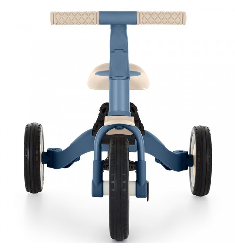 Kierownica z antypoślizgowymi gumowymi uchwytami jest regulowana, pedały można zdejmować, a siodełko dopasowuje się do wzrostu, zapewniając jednocześnie maksimum bezpieczeństwa dzięki dokładanym pasom bezpieczeństwa. Wytrzymałe gumowe koła, sprawiają, że rowerek doskonale sprawdza się zarówno w wersji dwu- jaki i trójkołowej, gwarantując stabilność na różnych nawierzchniach.