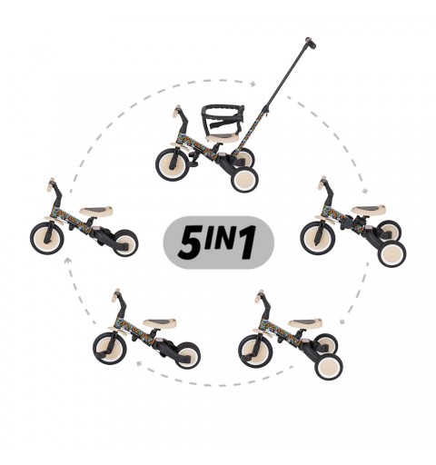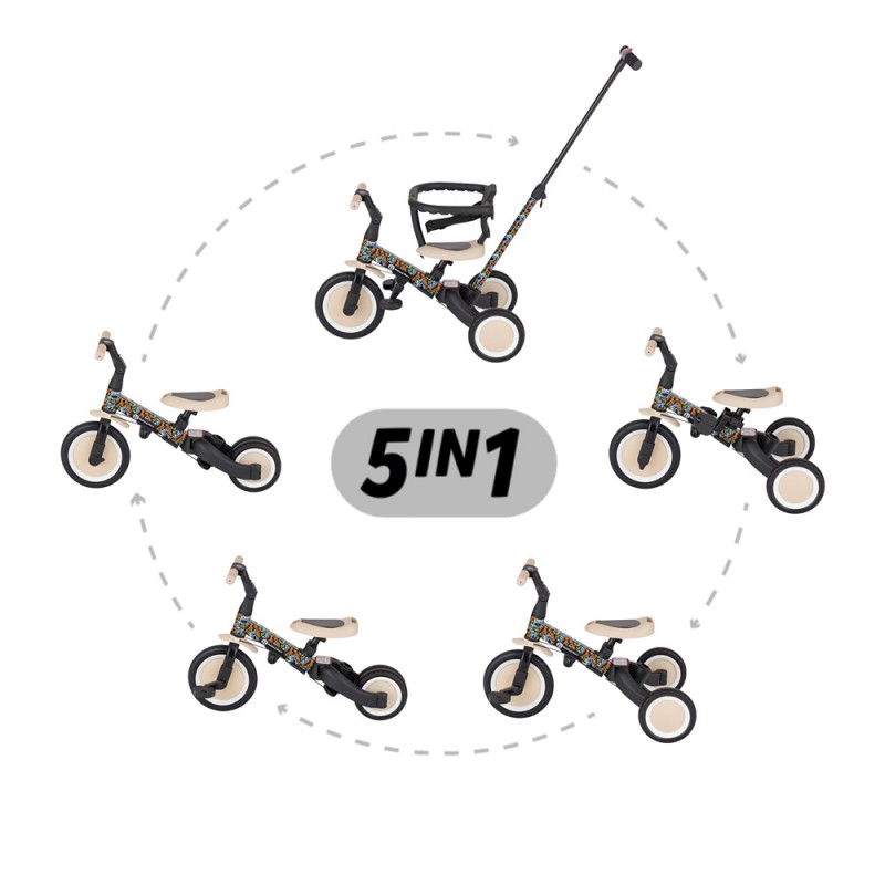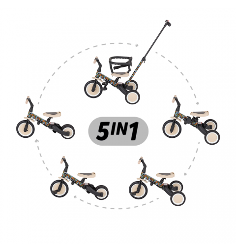 Wyjątkową cechą rowerka jest jego wielofunkcyjność, pozwalająca korzystać z niego aż w pięciu różnych trybach zależnie od wieku i umiejętności dziecka: