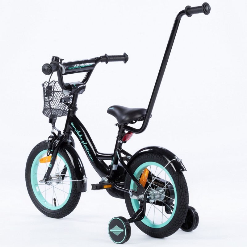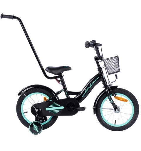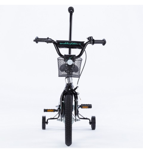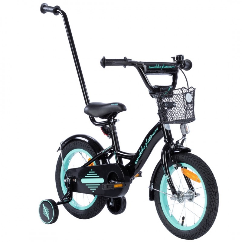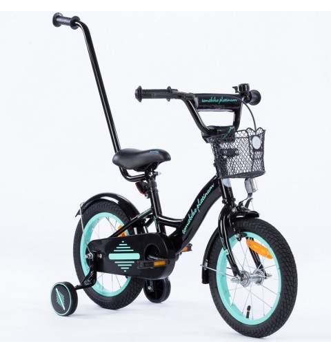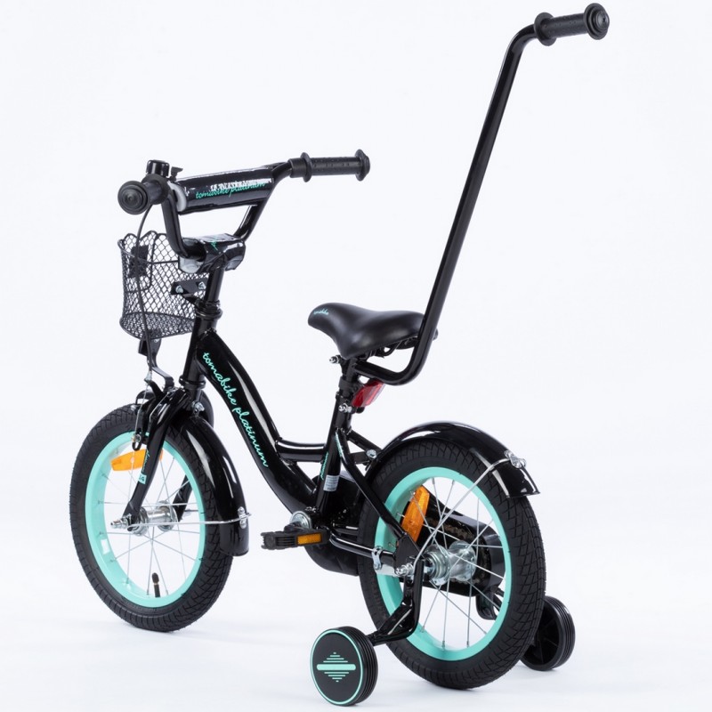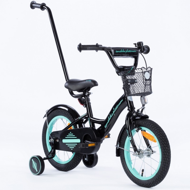 Rowerek dziecięcy 14 cali TomaBike PLATINUM z prowadnikiem | Czarno-Turkusowy