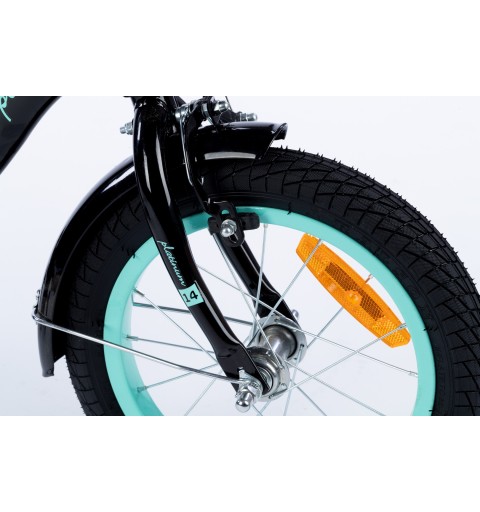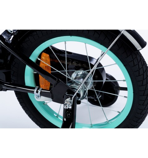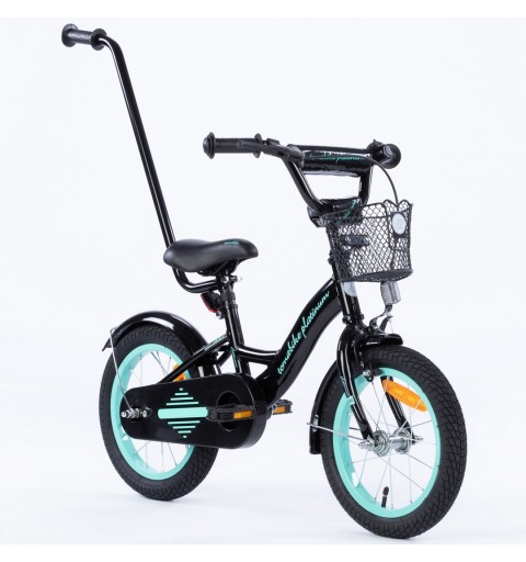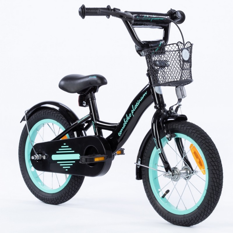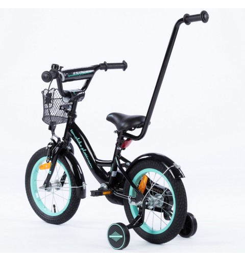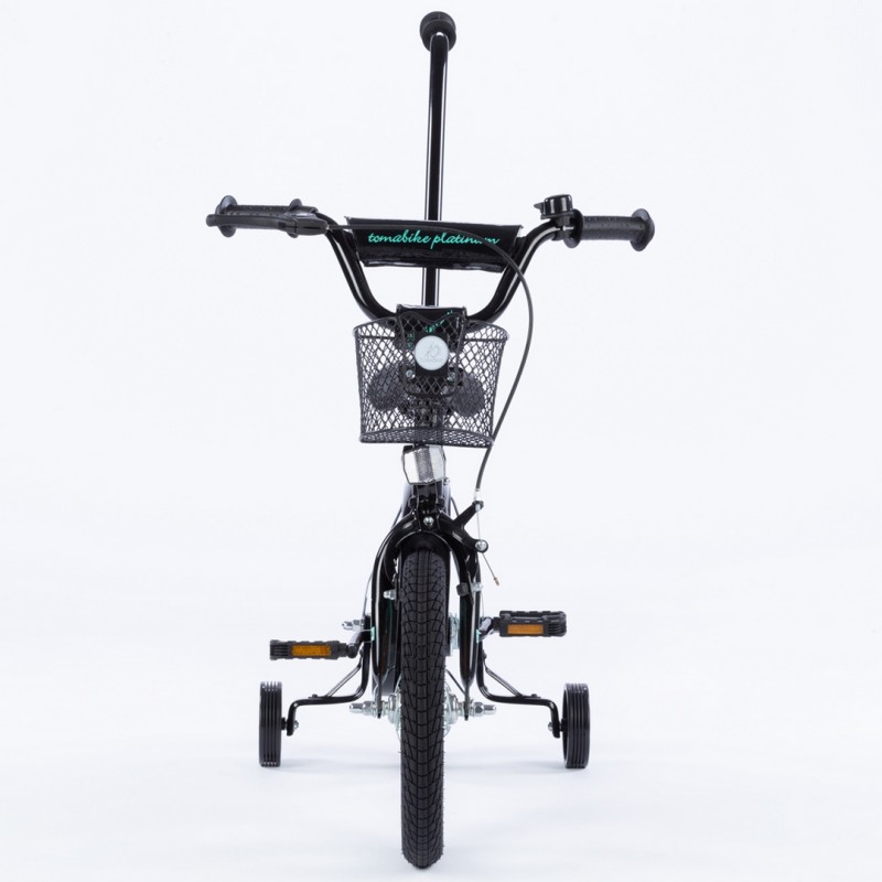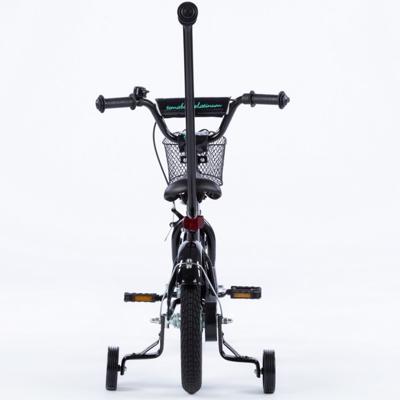 Rowerek dziecięcy 14 cali TomaBike PLATINUM z prowadnikiem | Czarno-Turkusowy