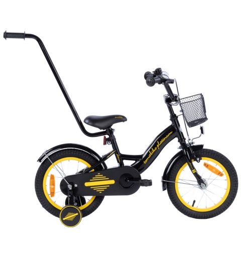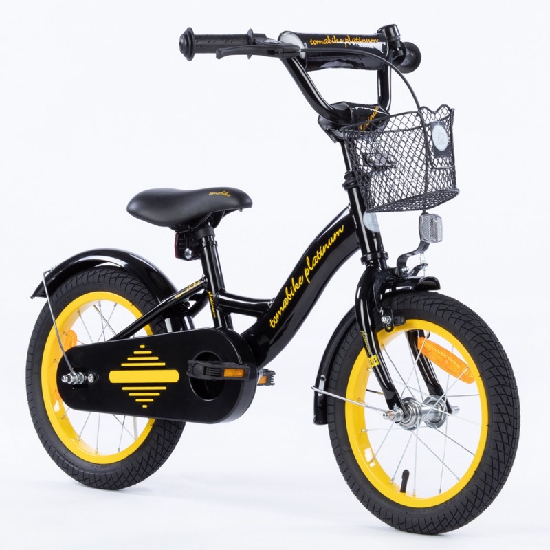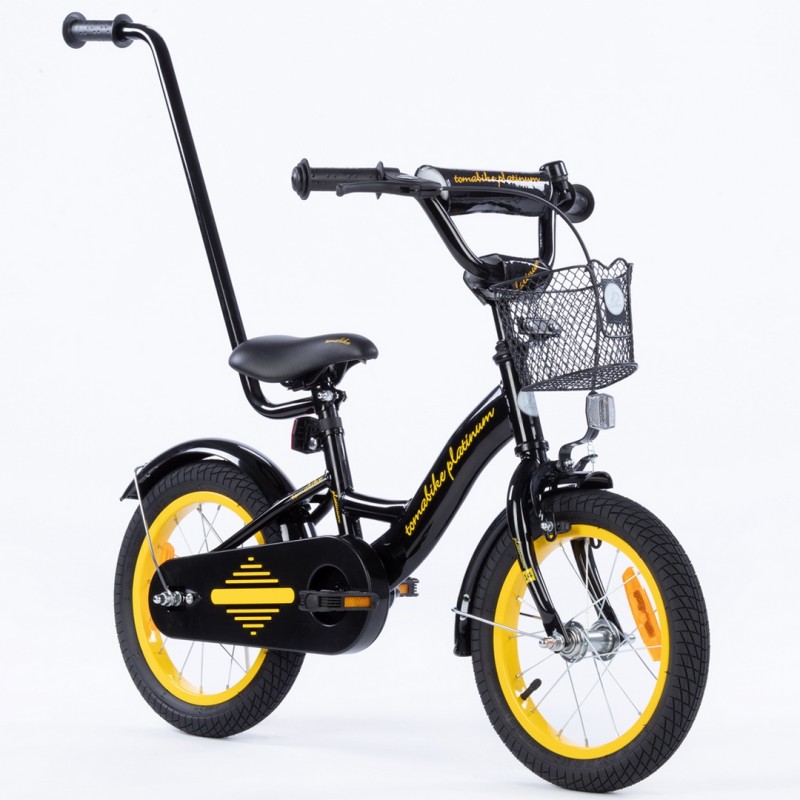 Rowerek dziecięcy 14 cali TomaBike PLATINUM z prowadnikiem | Czarno-Żółty