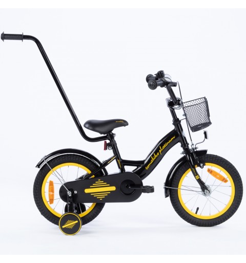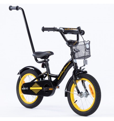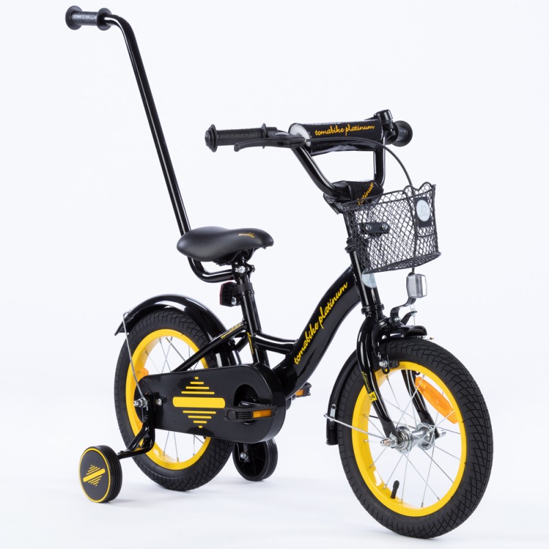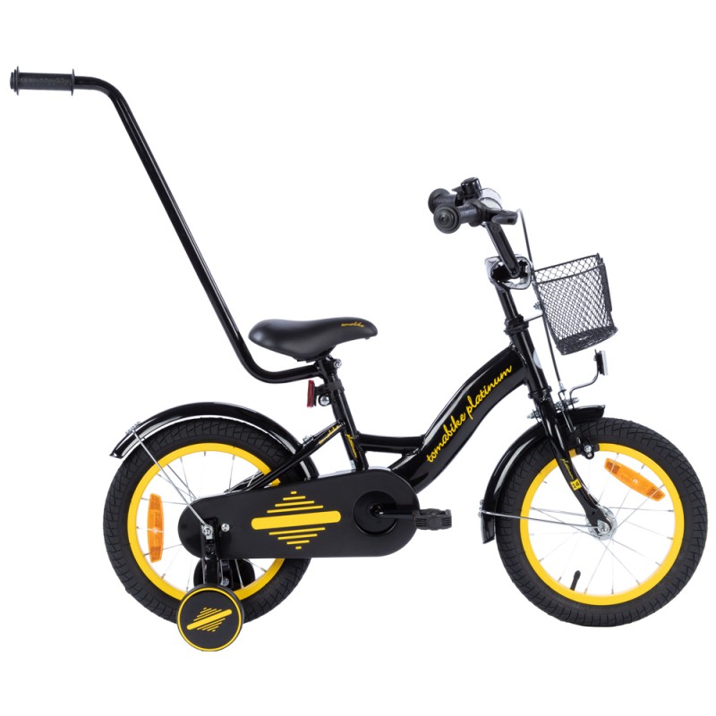 Rowerek dziecięcy 12 cali TomaBike PLATINUM z prowadnikiem | Czarno-Źółty