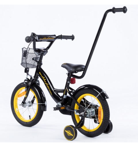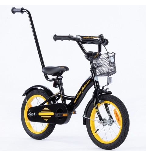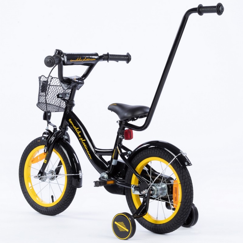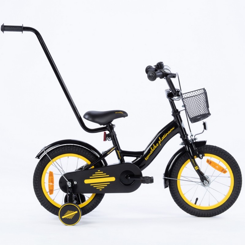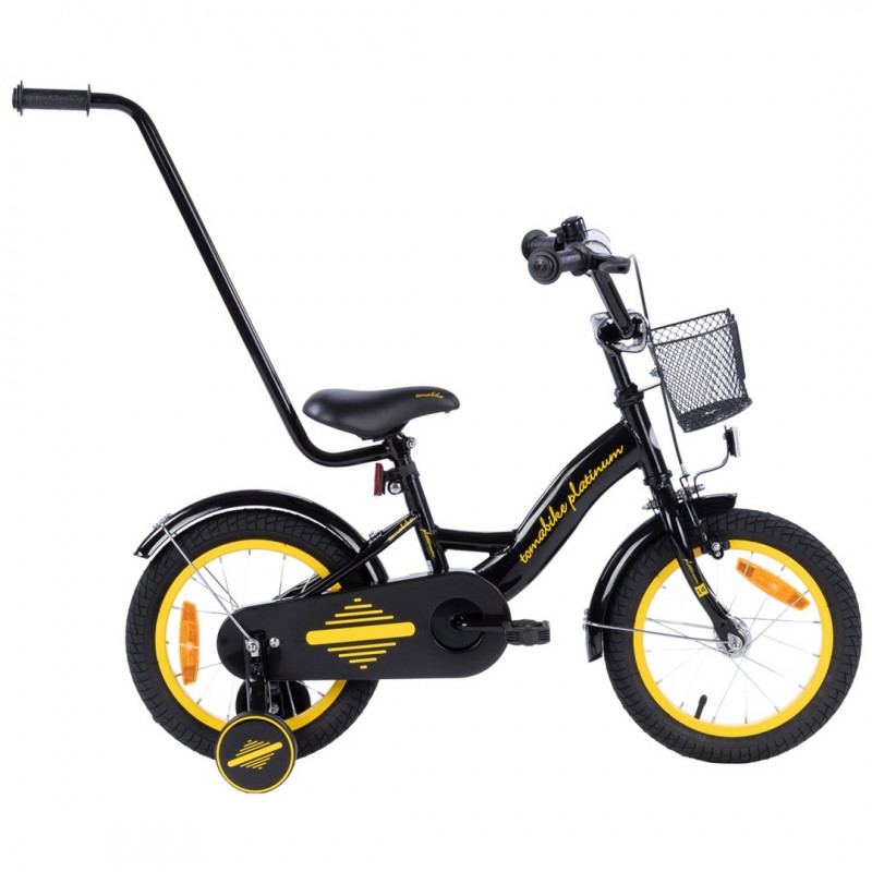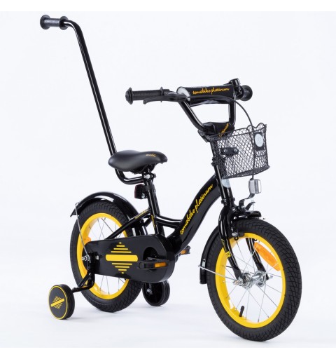 Rowerek dziecięcy 16 cali TomaBike PLATINUM z prowadnikiem | Czarno-Źółty