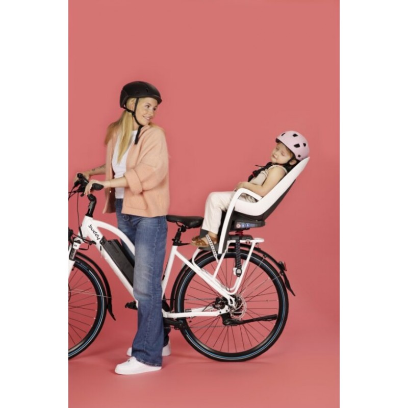 Łatwy montaż na bagażniku, umożliwiający szybkie i bezproblemowe przeniesienie fotelika na drugi rower.
