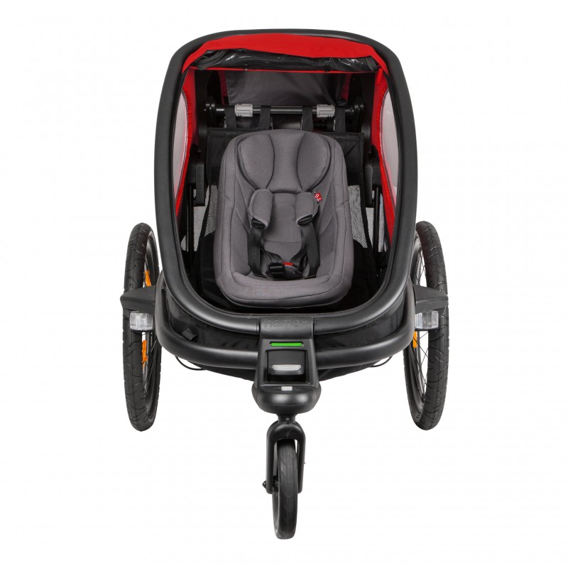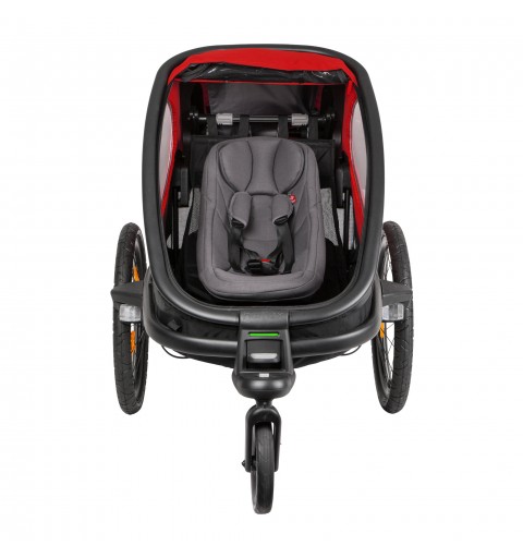 Z fotelika można korzystać wyłącznie wtedy, gdy przyczepka pełni funkcję wózka. Nie należy używać wkładki dla niemowląt podczas przejażdżki rowerowej.