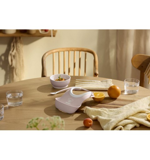 Zestaw jest idealny dla małych dzieci, które dopiero zaczynają smakować pokarmy stałe, ale są nadal karmione przez rodzica. Zawiera wszystko, co niezbędne do wprowadzenia dziecka do pokarmów stałych: solidną miskę, którą można łatwo trzymać w jednej ręce (dzięki czemu możesz karmić drugą), łyżkę do karmienia z długim uchwytem i wygodny śliniaczek, który pomoże złapać każdy bałagan.