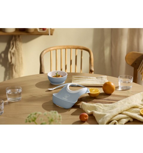 Materiał: Śliniaczek wykonany jest z polipropylenu (PP) i elastomerów termoplastycznych (TPE). Łyżka do karmienia wykonana jest z polipropylenu (PP). Miseczka wykonana jest z polipropylenu (PP), a spód z elastomerów termoplastycznych (TPE).