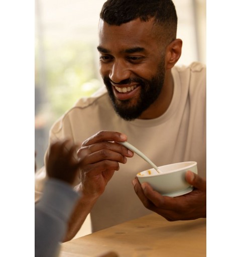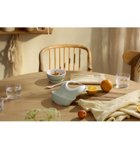 Zestaw jest idealny dla małych dzieci, które dopiero zaczynają smakować pokarmy stałe, ale są nadal karmione przez rodzica. Zawiera wszystko, co niezbędne do wprowadzenia dziecka do pokarmów stałych: solidną miskę, którą można łatwo trzymać w jednej ręce (dzięki czemu możesz karmić drugą), łyżkę do karmienia z długim uchwytem i wygodny śliniaczek, który pomoże złapać każdy bałagan.