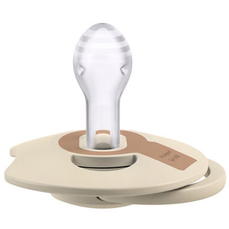Dynamiczny smoczek, dzięki unikalnej budowie z silikonu o różnej grubości, rozciąga się i kurczy zgodnie z rytmem ssania dziecka. Dzięki temu chroni jego odruch ssania i nie ma niekorzystnego wpływu na karmienie piersią. Kształt gumki jest symetryczny i inspirowany kształtem brodawki sutkowej, by zapewnić dziecku znajome odczucia. Tarczka smoczka ma specjalne wycięcie, by ułatwić oddychanie noskiem i przełykanie śliny podobnie jak przy piersi. Wyprofilowana tarczka jak najmniej przylega do skóry dziecka, co ułatwia swobodny przepływ powietrza i zmniejsza ryzyko podrażnień skóry.