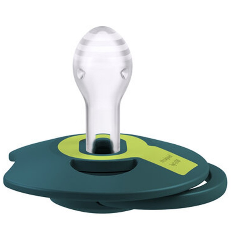 Dynamiczny smoczek, dzięki unikalnej budowie z silikonu o różnej grubości, rozciąga się i kurczy zgodnie z rytmem ssania dziecka. Dzięki temu chroni jego odruch ssania i nie ma niekorzystnego wpływu na karmienie piersią. Kształt gumki jest symetryczny i inspirowany kształtem brodawki sutkowej, by zapewnić dziecku znajome odczucia. Tarczka smoczka ma specjalne wycięcie, by ułatwić oddychanie noskiem i przełykanie śliny podobnie jak przy piersi. Wyprofilowana tarczka jak najmniej przylega do skóry dziecka, co ułatwia swobodny przepływ powietrza i zmniejsza ryzyko podrażnień skóry.