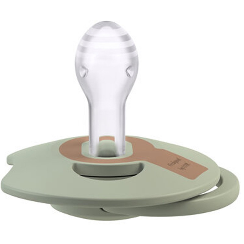 Dynamiczny smoczek, dzięki unikalnej budowie z silikonu o różnej grubości, rozciąga się i kurczy zgodnie z rytmem ssania dziecka. Dzięki temu chroni jego odruch ssania i nie ma niekorzystnego wpływu na karmienie piersią. Kształt gumki jest symetryczny i inspirowany kształtem brodawki sutkowej, by zapewnić dziecku znajome odczucia. Tarczka smoczka ma specjalne wycięcie, by ułatwić oddychanie noskiem i przełykanie śliny podobnie jak przy piersi. Wyprofilowana tarczka jak najmniej przylega do skóry dziecka, co ułatwia swobodny przepływ powietrza i zmniejsza ryzyko podrażnień skóry.
