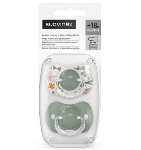 Suavinex Walk in the park - Smoczek fizjologiczny SX Pro +18 m 2szt | Oliwkowy