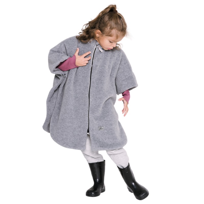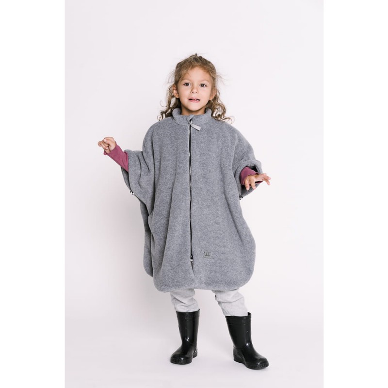Ponczo do fotelika w jednym, uniwersalnym rozmiarze, dedykowane dzieciom w wieku od 2 do 6 lat, długość zamka z przodu to 50 cm, długość całkowita poncza to około 60 cm, a rozpiętość ramion około 80 cm, więc może posłużyć bardzo długo. Aby przedłużyć życie poncza, możesz dokupić mitenki, czyli ocieplacze na rączki do kompletu. Prać w pralce, w temperaturze 30 stopni, zamek podczas prania powinien być zasunięty. Ponczo uszyte jest z dwóch warstw ciepłego, mięsistego polaru (100% poliester) o gramaturze 300g każda, posiadającego Certyfikat Oeko Tex Standard 100.