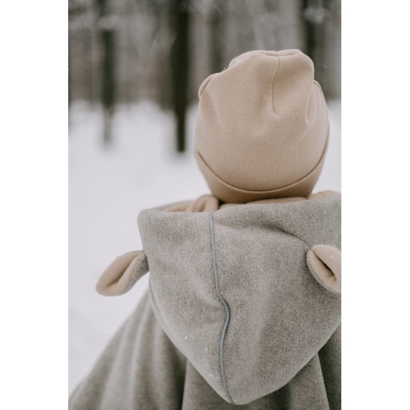 - Bez problemu wsadzamy dziecko do fotelika, odchylając tylną część poncza - plecki się nie grzeją, jak w przypadku kurtek, kombinezonów, czy nawet specjalnych śpiworków stworzonych w celu przewożenia w nich dzieci.