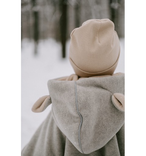 - Bez problemu wsadzamy dziecko do fotelika, odchylając tylną część poncza - plecki się nie grzeją, jak w przypadku kurtek, kombinezonów, czy nawet specjalnych śpiworków stworzonych w celu przewożenia w nich dzieci.