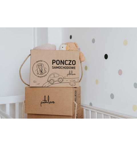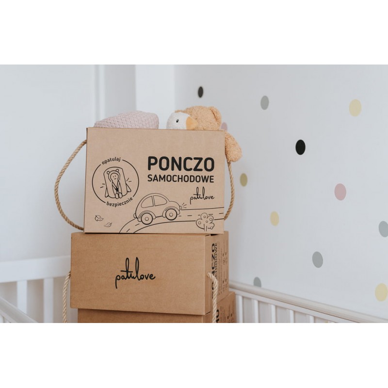 Ponczo samochodowe Patulove to bezpieczna alternatywa dla kurtki w aucie! Opatulaj bezpiecznie! Ponczo powstało po to, by zapewnić dzieciom bezpieczeństwo podczas jazdy jesienią i zimą w foteliku samochodowym. Ale sposobów na kreatywne użycie poncza znajdziecie mnóstwo. Wersja premium poncza samochodowego została zaprojektowana w taki sposób, by była jak najwygodniejsza i najbardziej praktyczna w użytkowaniu. Pakowana w piękne, eko-pudełka, które ozdobią dziecięcy pokój i posłużą do przechowywania poncza w okresie wiosenno-letnim :)