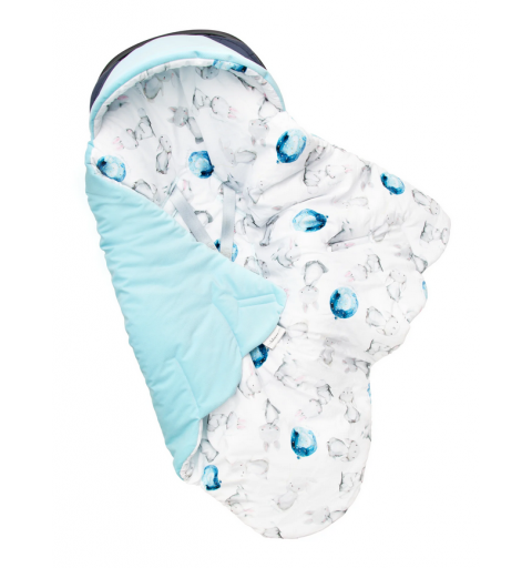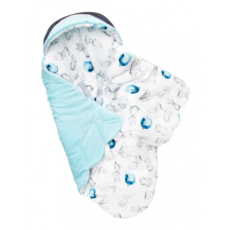 Doskonały do fotelika samochodowego, którym możesz otulić i zabezpieczyć przed chłodem maluszka podczas niesienia fotelika do samochodu i podczas jazdy, a kiedy wrócisz do domu ze śpiącym niemowlęciem nie musisz budzić go żeby zdjąć ciepłe ubranko, tylko odkrywasz boki otulacza. Jedna strona otulacza wykonana jest z najwyższej jakości bawełny, druga strona to bajecznie mięciutki Velvet, w środku wypełniony antyalergiczną włókniną zapewniającą ciepło maluszkowi.
