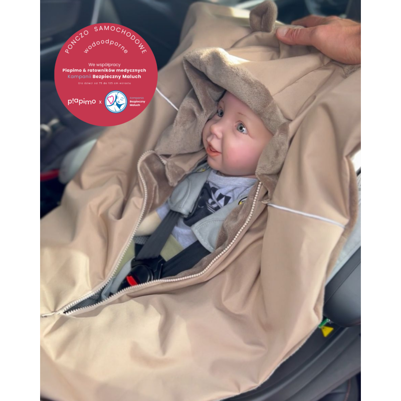 Ponczo samochodowe stworzone we współpracy Piapimo & ratowników medycznych Kampanii Bezpieczny Maluch – to bezpieczne przewożenie dzieci w fotelikach samochodowych.