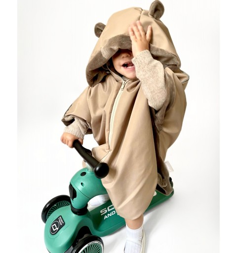 - Ponczo idealnie sprawdzi się również jako kurtka przy zabawach na zewnątrz, podczas jazdy na rowerze, na hulajnodze oraz przy jesiennych spacerach.