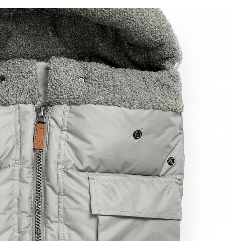 Materiał wierzchni ma za zadanie skutecznie odpychać wiatr i wodę. Śpiworek jest wyposażony w ochronną membranę, która zapewnia dziecku ciepło i suchość. Osiąga to bez stosowania zabiegów chemicznych.