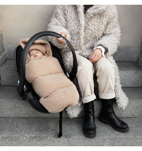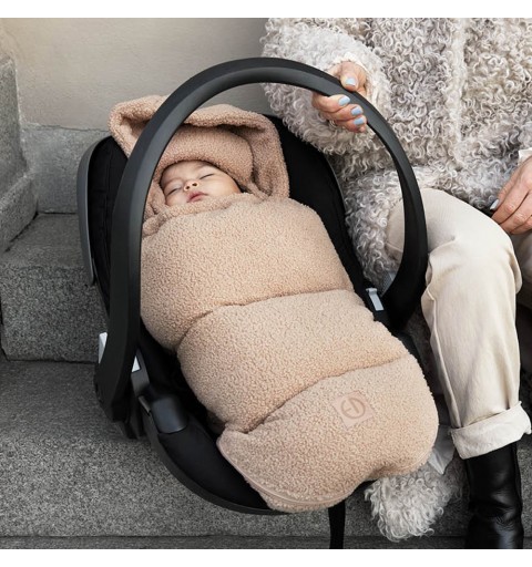 Gładkie, wysokiej jakości suwaki po obu stronach ułatwiają wkładanie i wyjmowanie dziecka z fotelika samochodowego, a składana klapa przednia zapewnia natychmiastową kontrolę temperatury. Duży kaptur chroni przed wiatrem i utrzymuje ciepło. Kiedy nie jest potrzebny, kaptur można otworzyć i schować dzięki wbudowanemu zamkowi błyskawicznemu. Śpiworek można w całości wyprać w pralce, dzięki czemu łatwo utrzymać go w czystości.