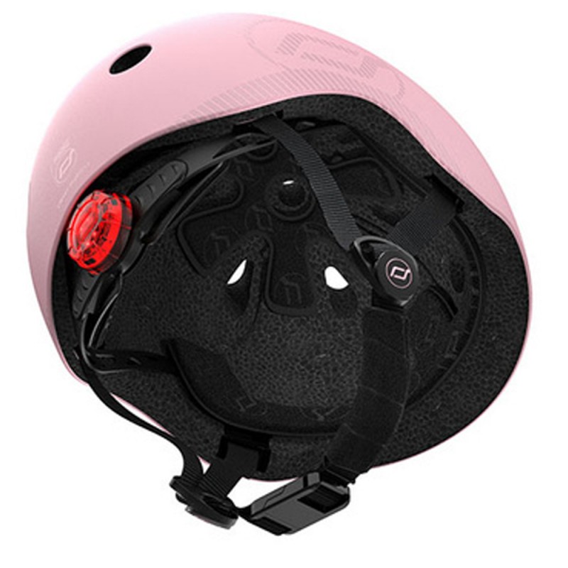 Wbudowana z tyłu czerwona lampka LED zwiększa widoczność dziecka na drodze, szczególnie o zmierzchu i przy słabym oświetleniu. Lampka oferuje trzy tryby świecenia i działa na wymienną baterię, dzięki czemu kask jest zawsze gotowy do użytku - nawet na dłuższe podróże!