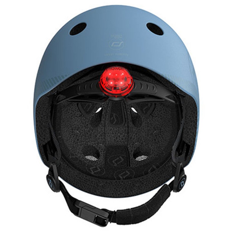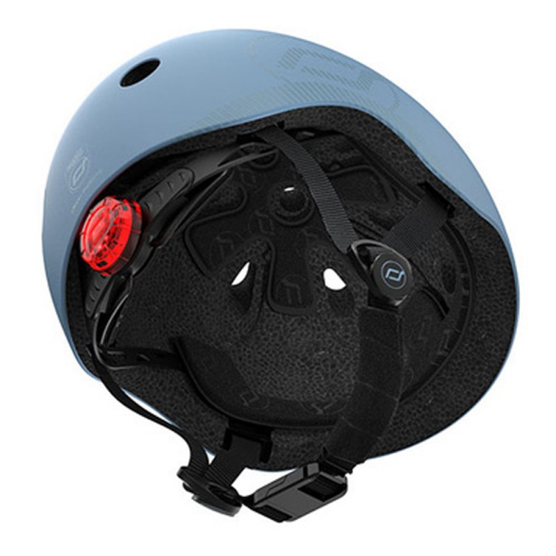 Wbudowana z tyłu czerwona lampka LED zwiększa widoczność dziecka na drodze, szczególnie o zmierzchu i przy słabym oświetleniu. Lampka oferuje trzy tryby świecenia i działa na wymienną baterię, dzięki czemu kask jest zawsze gotowy do użytku - nawet na dłuższe podróże!