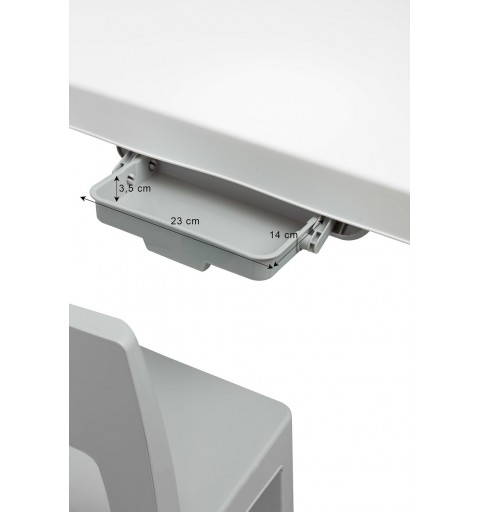 Monti to wszechstronny stoliczek dla dzieci z krzesełkami. Z jego pomocą łatwo stworzysz kącik do prac artystycznych lub zabawy zarówno w domu, jak i w plenerze. Zestaw wykonany został z wysokiej jakości tworzywa sztucznego — bezpiecznego oraz odpornego na różne kaprysy pogody i dzikie zabawy. Stolik i krzesełka są lekkie, więc dziecko może je samodzielnie przenosić. Dzięki prostej konstrukcji Monti można łatwo złożyć – wystarczy połączyć elementy na wcisk. Stolik posiada 2 szuflady, które chowają się pod blatem, a także ma możliwość obniżenia wysokości o 6 cm.