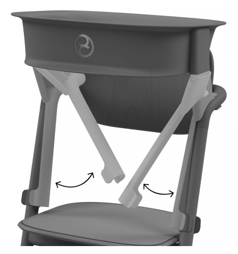Pomysłowa konstrukcja przenosi ciężar na dolną część krzesełka Lemo, zapewniając stabilność. Ochronna obręcz umieszczona wyżej podpiera plecy dziecka. Antypoślizgowe maty silikonowe na siedzisku i oparciu na nogi dodają przyczepności wspinającemu się lub stojącemu dziecku.
