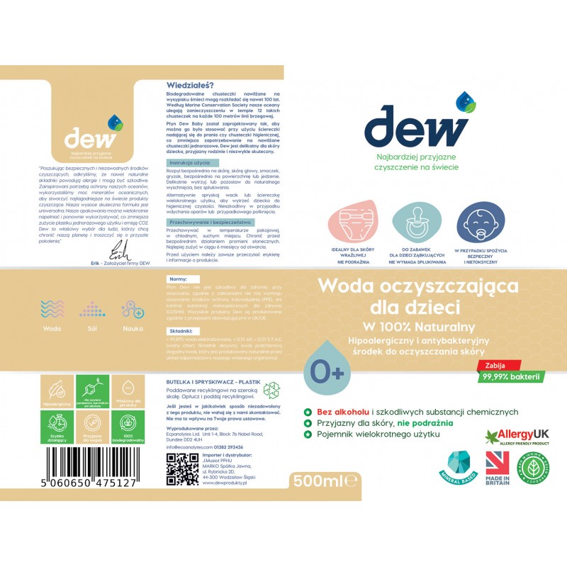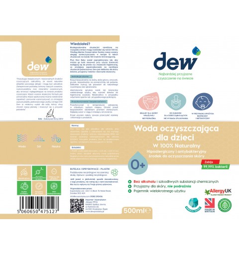 Woda oczyszczająca dla dzieci jest bezpieczny również dla niemowląt cierpiących na odparzenia pieluszkowe, ciemieniuchę i egzemę niemowlęcą. Nasza woda oczyszczająca dla niemowląt jest łatwa w użyciu i nie wymaga rozcieńczania ani spłukiwania. Jest tak delikatna, że można ją rozpylać bezpośrednio na skórę dziecka. Można pozostawić do naturalnego wyschnięcia lub wytrzeć do czysta ściereczką lub chusteczką. Alternatywnie spryskaj wacik kosmetyczny lub ściereczkę wielokrotnego użytku, aby wytrzeć dziecko do higienicznej czystości. Nieszkodliwy w przypadku wdychania oparów lub przypadkowego połknięcia.