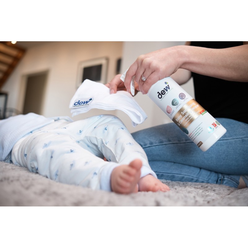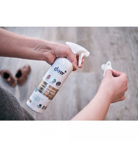 Alternatywnie spryskaj wacik lub ściereczkę wielokrotnego użytku, aby wytrzeć dziecko do higienicznej czystości. Nieszkodliwy w przypadku wdychania oparów lub przypadkowego połknięcia.