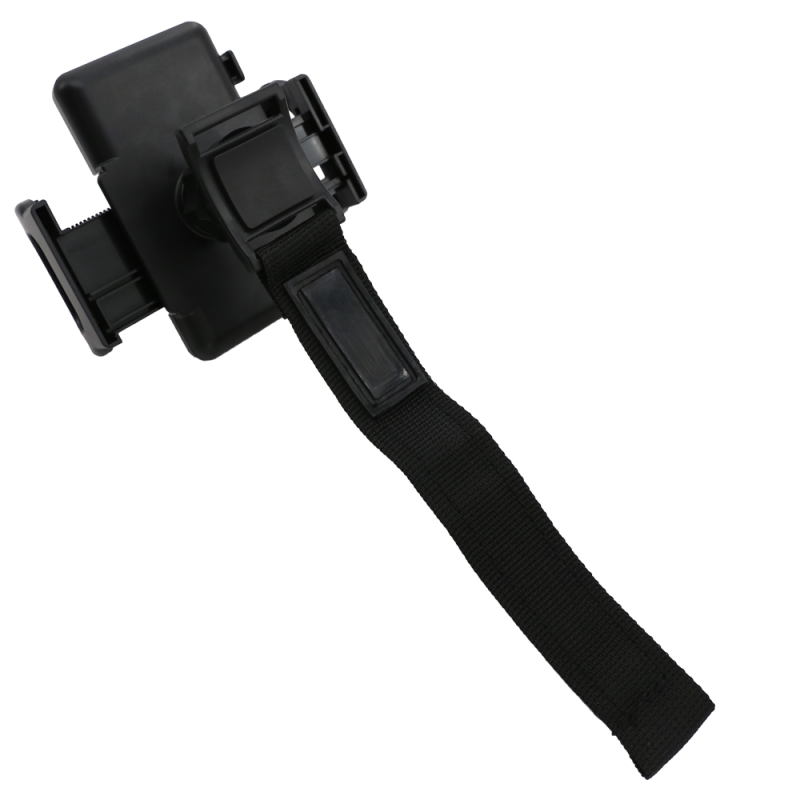 Antypoślizgowa powłoka uchwytu zapewnia, że telefon pozostaje na swoim miejscu, nawet gdy wózek porusza się po nierównym terenie. Dzięki solidnej, elastycznej konstrukcji, uchwyt wytrzymuje codzienne użytkowanie oraz drobne wstrząsy i uderzenia.