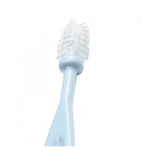 Zestaw delikatnych szczoteczek do zębów jest niezastąpiony w codziennej higienie jamy ustnej dziecka. W zestawie znajdują się 3 szczotki: pierwsza , silikonowa przeznaczona jest do masażu dziąseł, dla dzieci które nie posiadają jeszcze swoich ząbków; druga – silikonowa przeznaczona jest do mycia małych ząbków; trzecia – z miękkim włosiem, przeznaczona dla dzieci starszych. Szczoteczki są idealne do nauki samodzielnego mycia zębów.