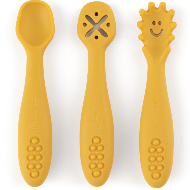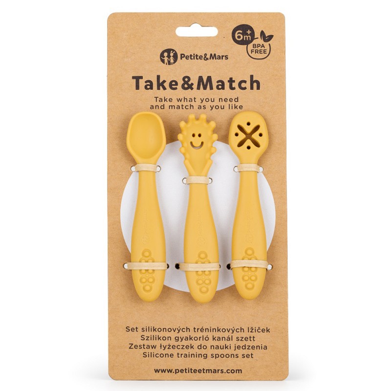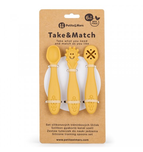Petite& Mars Take&Match - Zestaw silikonowych łyżeczek do nauki jedzenia 3 szt. 6m+ | Intense Ochre
