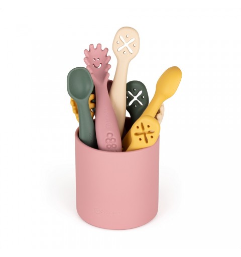 Zestaw został wykonany w całości z silikonu spożywczego bez BPA. Dzięki temu dziecko może jeść za pomocą łyżeczek pokarmy ciepłe, zimne i o zróżnicowanej konsystencji. Elastyczny silikon sprawia, że łyżeczki doskonale nadają się do wrażliwych dziąseł małego dziecka. Przeznaczone są dla małych dzieci od 6 miesiąca życia, którym wprowadza się rozszerzoną dietę oraz takich które z powodzeniem uczą się już samodzielnego jedzenia. Zaokrąglone kształty i niewielkie rozmiary ułatwiają małemu dziecku nabieranie i spożywanie pokarmu.