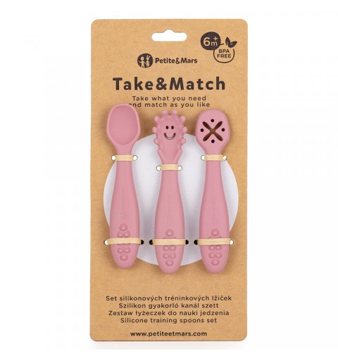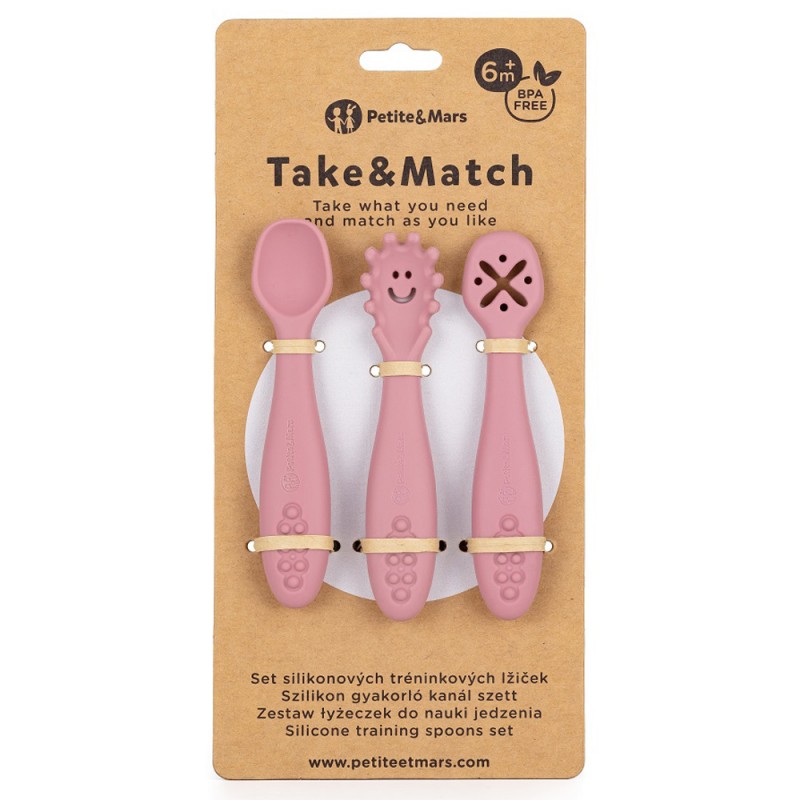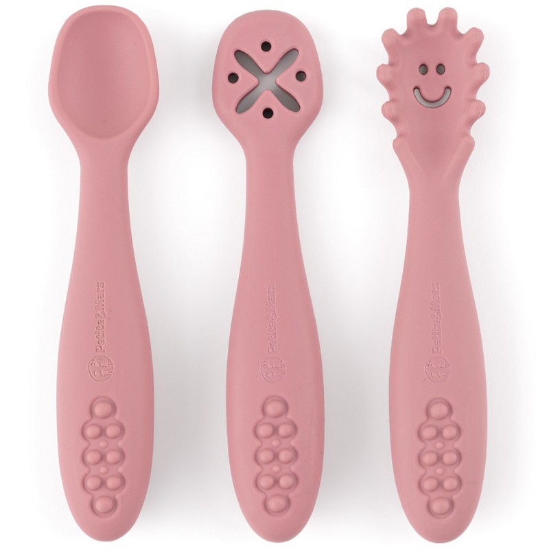 Petite& Mars Take&Match - Zestaw silikonowych łyżeczek do nauki jedzenia 3 szt. 6m+ | Dusty Rose