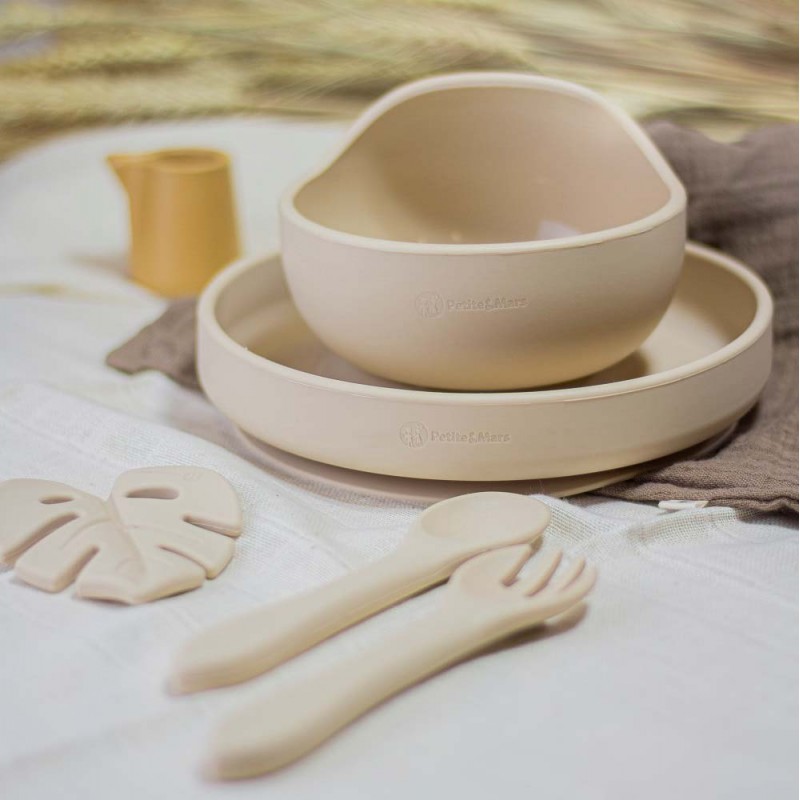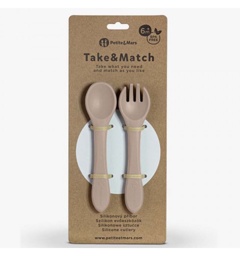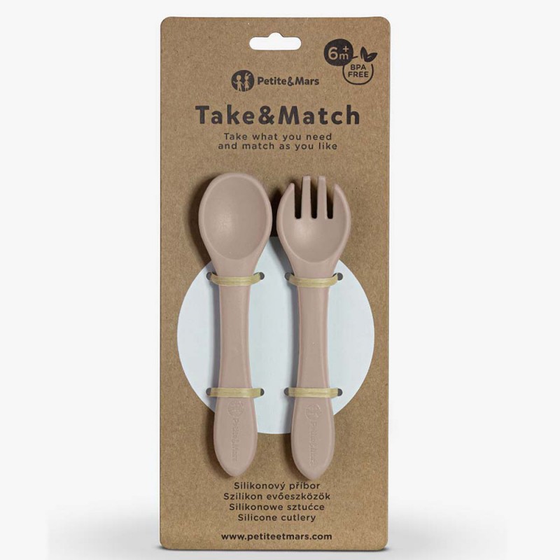 Petite& Mars Take&Match - silikonowe sztućce 6m+ | Desert Sand